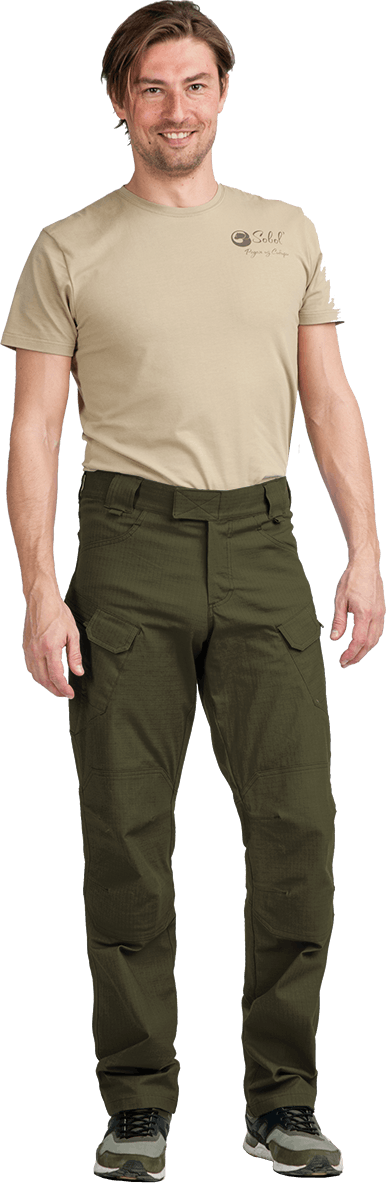 • на задних половинках брюк вместительные карманы с наклонным входом, карманы для ножа