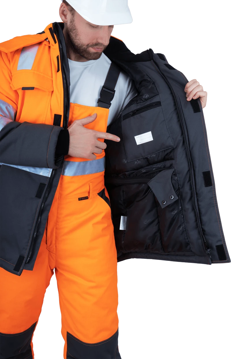 Men' s high visibility work suit REFLECT-2 against reduced air temperature and wind, mechanical unflu