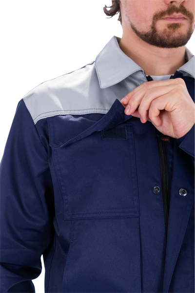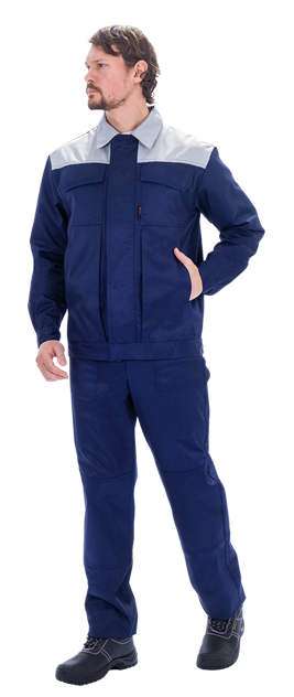 Костюм мужской ТЕХНИК 2 от механических воздействий и ОПЗ (куртка, полукомбинезон), темно-синий/серый