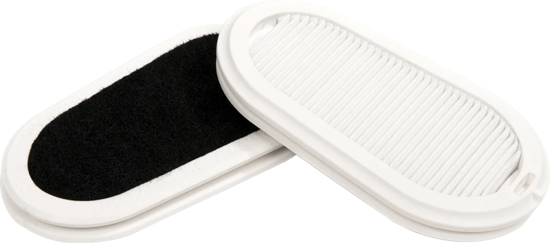Фильтры выполнены по запатентованной технологии HESPA (High Efficiency Synthetic Particulate Airfilter). Компактные, тонкие, гибкие и прочные. Водоотталкивающие, не набирают влагу. Фильтры поставляются в комплекте с маской, делая ее сразу пригодной к ношению. Могут быть легко заменены на новые. Обеспечивают самую низкую сопротивляемость дыханию среди существующих подобных фильтров.